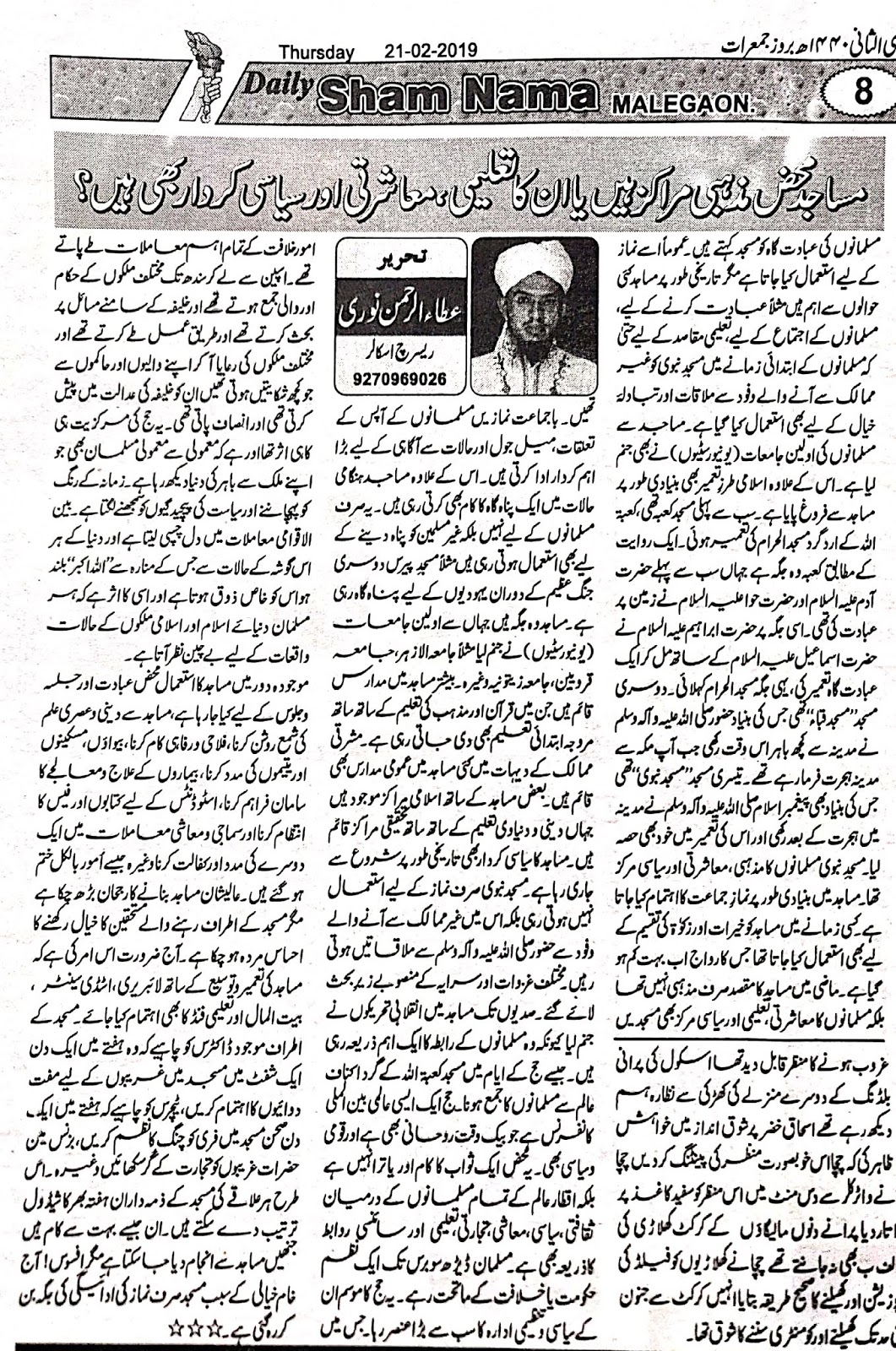 از:عطاءالرحمن نوری (ریسرچ اسکالر)مالیگاﺅں