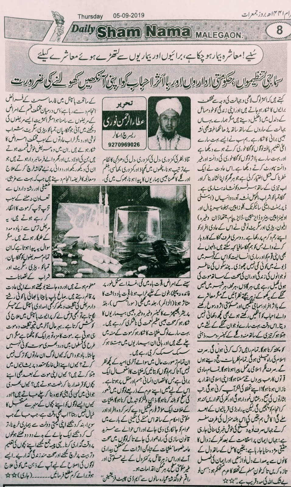 راقم خودگذشتہ گیارہ سالوں سے ”ایم ڈی چیسٹ فزیشیئن“ کے ماتحت ہاسپٹل میں فارماسسٹ کے فرائض انجام دے رہا ہے ،اس درمیان مختلف قسم کے امراض کے مریضوں سے سامنا ہوا مگر اکثریت ایسے مریضوں کی دیکھنے میں آئی جو گٹکا ، پان ، تمباکو ، بیڑی ، سگریٹ ، شراب نوشی اور دیگر خراب عادتوںکے سبب مختلف امراض کا شکار ہوئے ہیں۔ان میں وہ مریض خوش قسمت ہوتے ہیں جن کی اولادیں اور گھر والے فرمانبردار ہوتے ہیں جو ان کی دیکھ ریکھ اور دوائی پر بے تحاشہ خرچ کر کے علاج و معالجہ کا فریضہ انجام دیتے ہیں جب کہ بہت سے غریبی، ضعیفی اور رشتہ داروں سے تعاون نہ ملنے کے سبب تڑپ تڑپ کر موت کا انتظار کر رہے ہوتے ہیں، یہ مریض ترس سے زیادہ مدد کے طلبگار ہوتے ہیں۔ مگر سوال یہ پیدا ہوتا ہے کہ ان تمام مریضوں کو گٹکا ، پان ، تمباکو ، بیڑی ، سگریٹ اور شراب کے نقصانات معلوم ہوتے ہیں اور وہ جانتے بوجھتے ہوئے اپنی عادت پر قائم رہتے ہیں۔صالح باپ یا بیٹا یا بھائی یاکوئی رشتے دار مریض کی تکلیف دیکھ کر کبھی امدادی ہاسپٹل کے چکر لگاتا ہے تو کبھی قرض لے کر پرائیوٹ ہاسپٹل میں علاج کی کوشش کرتا ہے ۔بہر حال آخر میں نتیجہ تکلیف دہ موت ہی ہوتی ہے ۔