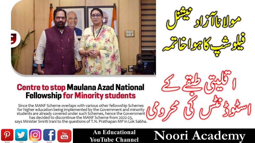 مرکز نے کیا ریسرچ اسکالرس کو ملنے والی اسکالرشپ’’مولانا آزادنیشنل فیلو شپ‘‘ کا خاتمہ ازقلم: عطاء الرحمٰن نوری (ڈائریکٹر نوری اکیڈمی) مرکز نے تعلیمی سال 2022-23ء سے مولانا آزاد نیشنل فیلو شپ (ایم .اے.این.ایف) کو بند کرنے کا فیصلہ کیا ہے۔ یہ اقلیتی طبقوں کے اسٹوڈنٹس کے لیے ایک اسکالرشپ ہے جسے ’’یو پی اے‘‘ … Continue reading مرکز نے کیا ’’مولانا آزادنیشنل فیلو شپ‘‘ کا خاتمہ