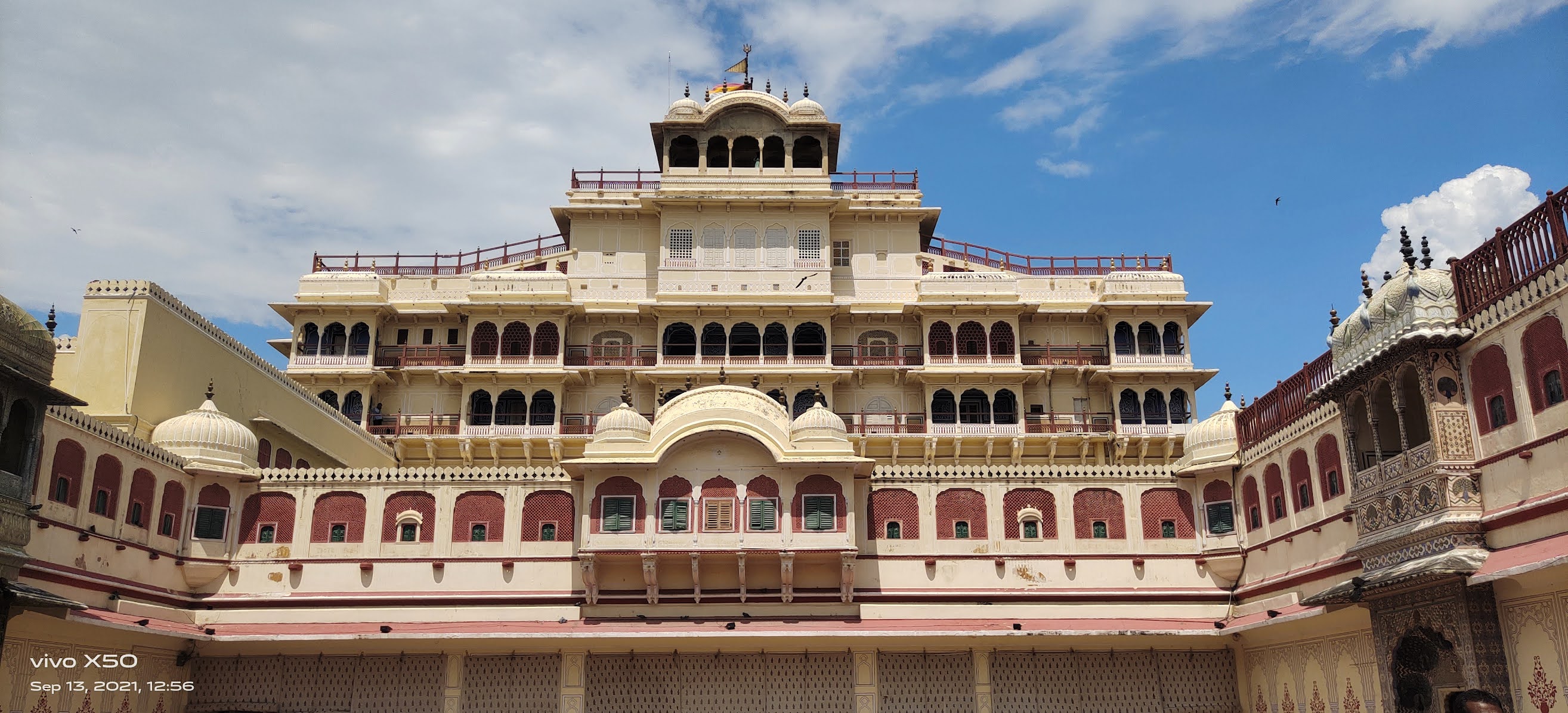 اس کے بعد ہم سٹی پیلس پہنچے ۔ یہ راجستھانی اور مغل فن تعمیر کا ایک شاندار نمونہ ہے۔ یہ جے پور کے شاہی خاندان کا گھر ہے۔ سٹی پیلس کے ویلکم پیلس میں شاندار ملبوسات اور ٹیکسٹائل کی نمائش ہوتی ہے۔ آرمری میں خنجروں اور تلواروں کی نمائش کی گئی ہے۔ پریتم نواس، دیوانِ عام اور شاندار محل دیکھنے سے تعلق رکھتا ہے۔ اس میں مہاراجہ سوائی مان سنگھ دوم میوزیم ہے ۔